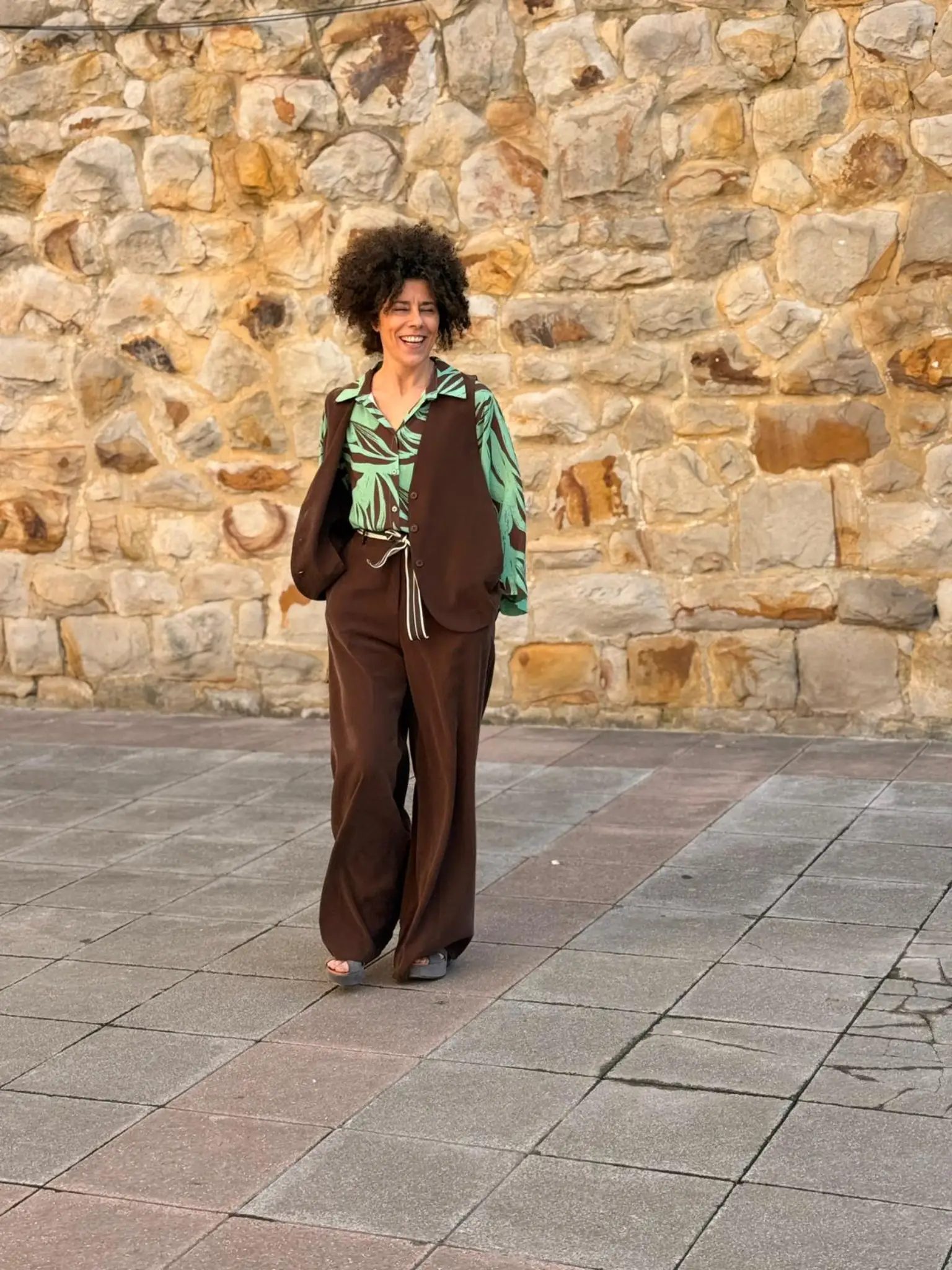 El bajo acabado en forma redondeada suaviza la silueta y favorece la caída de la prenda. Confeccionado en un tejido con una caída espectacular, que aporta movimiento y un aire sofisticado al conjunto.