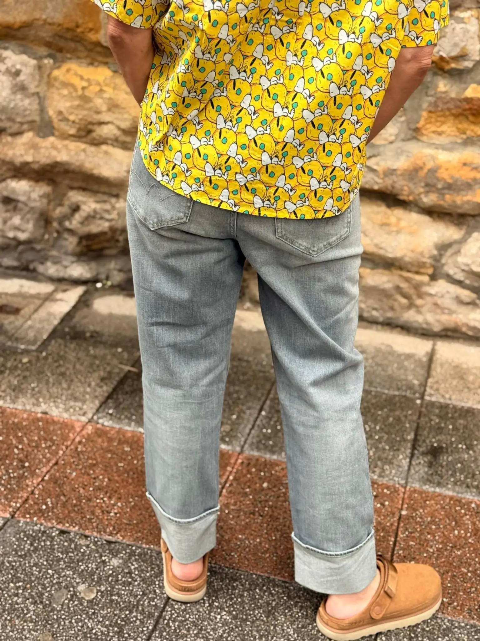 Denim de toda la vida pero con ese aire relajado que lo hace especial. De talle alto y corte cómodo, sienta genial y estiliza sin esfuerzo