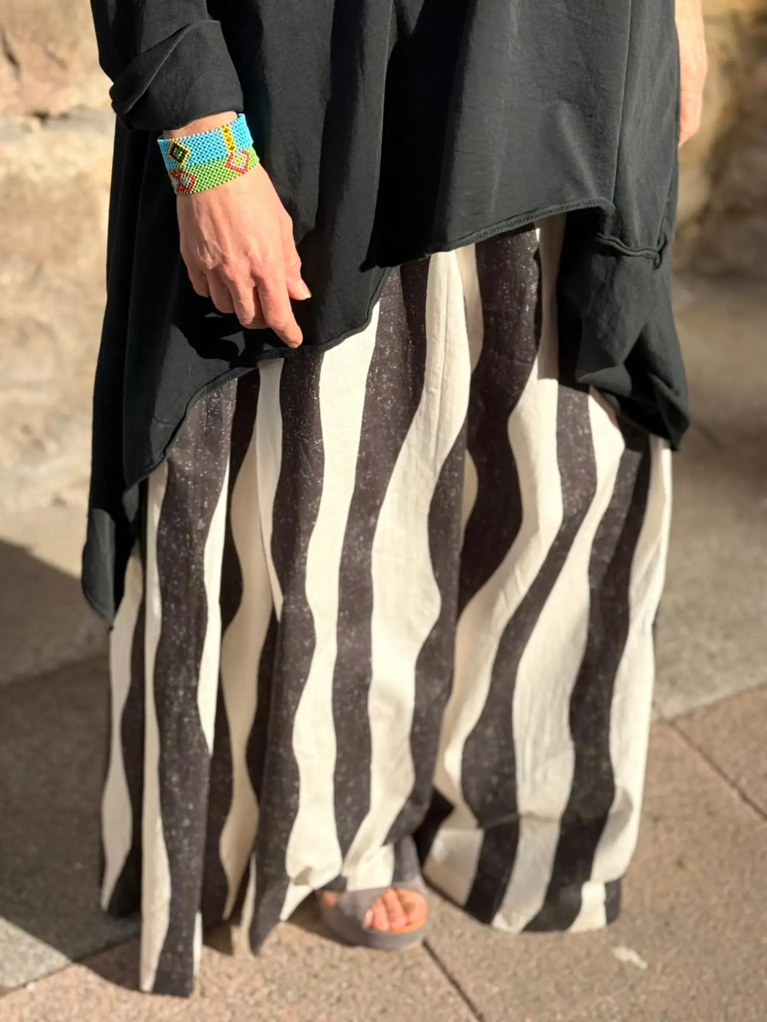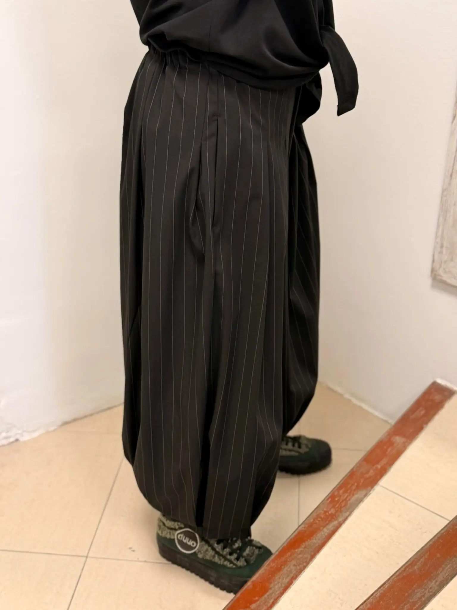 Pantalón con mucha personalidad y un punto sofisticado. Confeccionado en tejido fluido de rayas finas, combina comodidad y diseño en una silueta amplia que cae con movimiento y carácter.